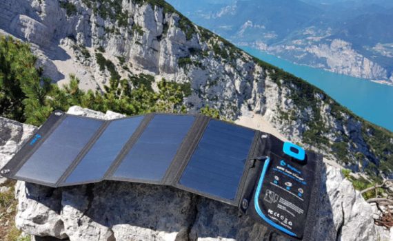Der Big Blue Solar Lader ist einer der leichteren und leistungsstärkeren Solarlader. Das mit 28 Watt Ladeleistung (28W/5V=5,6A) angegebene Gerät schafft bei optimaler Einstrahlung über 2 Ampere Ladestrom an jedem Port.